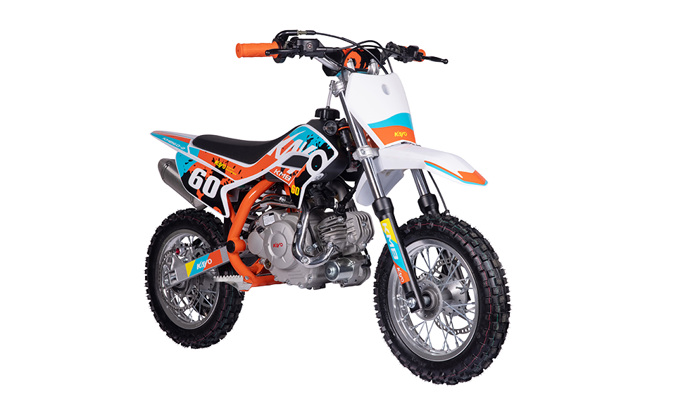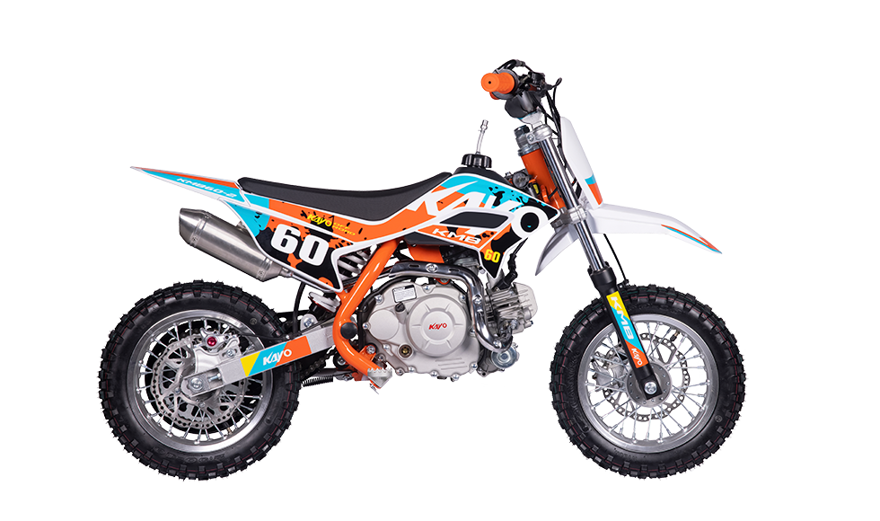 The Kayo KMB60 is a small, automatic, four-stroke pit bike designed as an entry-level dirt bike for children, featuring a simple twist-and-go throttle, electric start, and front and rear disc brakes for safety and easy operation. Its lightweight, low seat height and adjustable throttle make it suitable for a wide range of young riders, while the durable and low-maintenance design makes it reliable for backyard or track use.