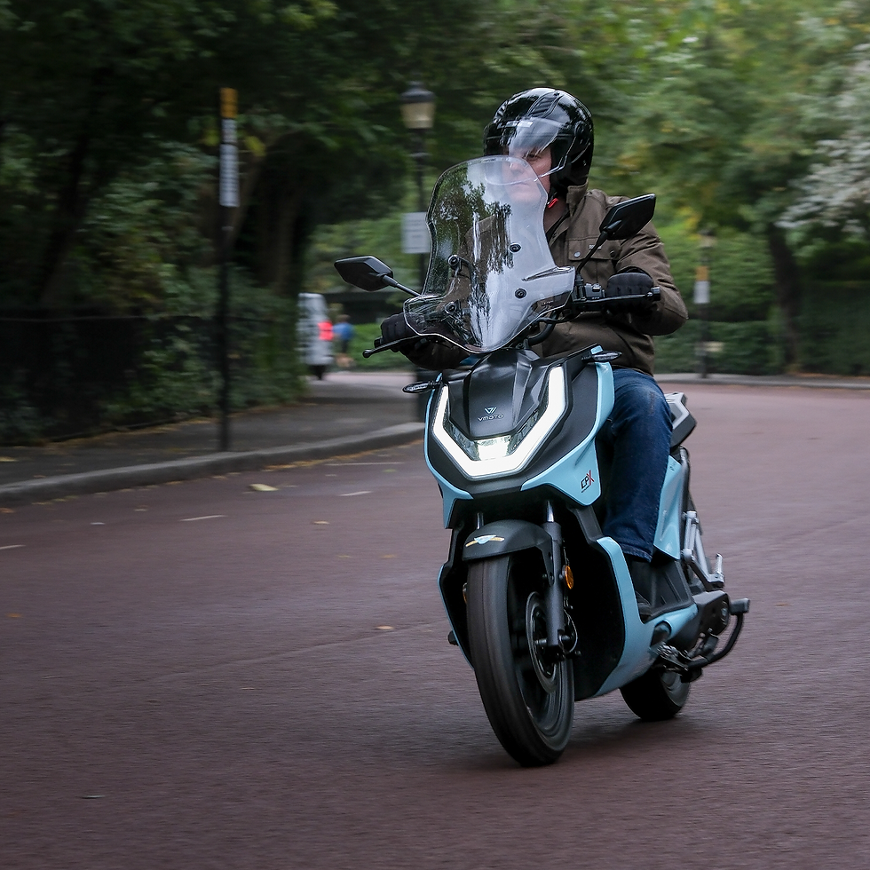 The Vmoto CPX Explorer is a rugged electric scooter built for riders who want eco‑friendly urban commuting with adventurous versatility. Powered by a responsive electric motor and removable lithium batteries, it delivers smooth, quiet performance and zero‑emission travel. Its adventure‑inspired design features chunky tyres, elevated suspension, LED lighting, and a digital display, adding confidence on varied surfaces. With twist‑and‑go operation, practical under‑seat storage, and strong build quality, the CPX Explorer combines stylish electric mobility with everyday practicality and exploration‑ready attitude.